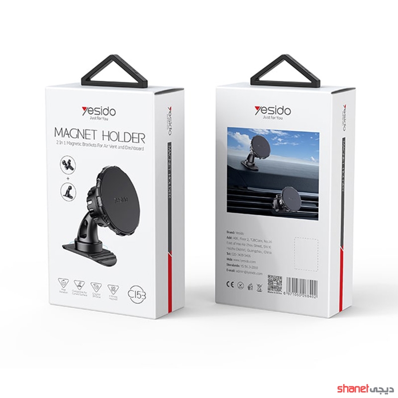 با به کارگیری بسیار گوشی های موبایل در طول روز، لوازم جانبی های زیادی مربوط به این دستگاه هوشمند وارد بازار شده اند تا کارایی و راحتی استفاده از آن را چندین برابر کنند. هولدر مدل C153 یسیدو، جزء لوازم جانبی کاربردی محسوب می شود و برای افرادی که در طول رانندگی نیاز به گوشی موبایل خود برای انجام یک سری فعالیت ها مانند بررسی نقشه های مسیر یا پاسخگویی به تماس ها را دارند، بسیار مناسب و ضروری خواهد بود. این هولدر به صورت مگنتی (آهنربایی) به گوشی های موبایل و تبلت ها متصل می شود و در موقع ویبره، تکان های شدید و … دستگاه را ثابت نگه می دارد و از افتادن آن جلوگیری می کند. بدنه این پایه نگهدارنده از جنس پلاستیک ABS می باشد که در برابر فشار، ضربه و دیگر آسیب ها مقاومت بالایی از خود نشان می دهد. هولدر مگنتی Yesido C153 از طریق پایه توسط چسب به راحتی به داشبورد خودرو می چسبد و همچنین دارای پایه ی قابل نصب بر روی دریچه کولر خودرو نیز می باشد. این پایه نگهدارنده موبایل آهنربایی یسیدو، برای راحتی استفاده کاربران و تنظیم زاویه بهتر دید، "قابلیت ویژه چرخش پایه 360 درجه" را نیز فراهم کرده است