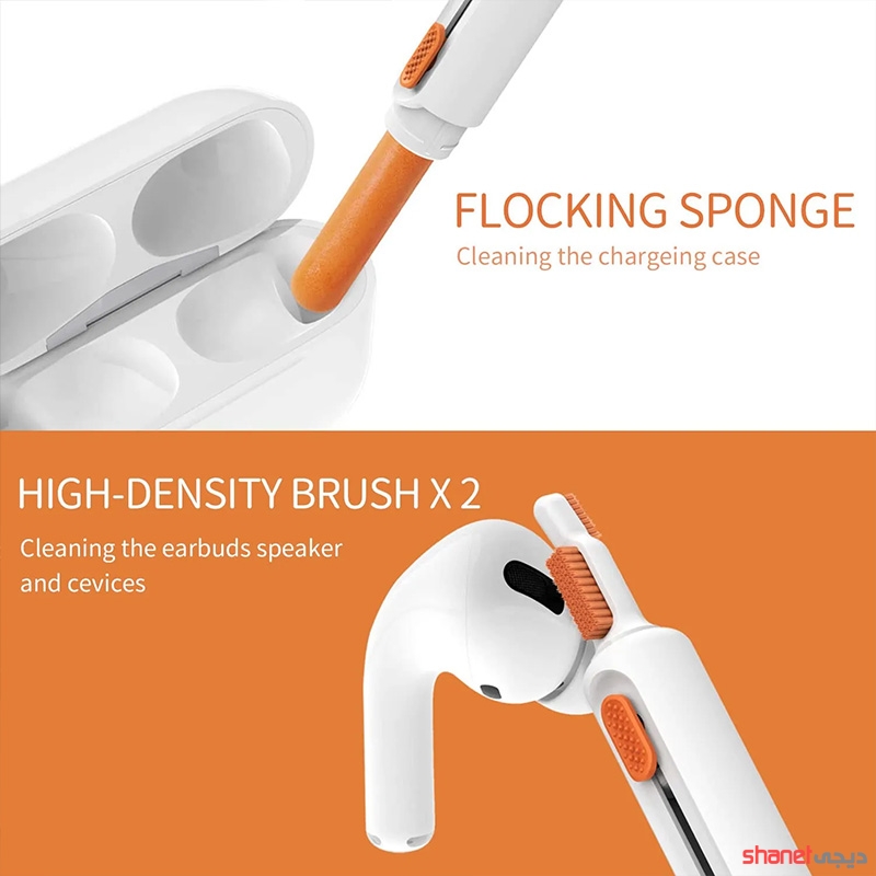 3.تمیز کردن هدفون:با استفاده از قلمِ دو سر کیت تمیز کننده میتوانید کِیس هدفون،گوشی های هدفون،محفظه اسپیکر و میکروفن را تمیزکنید.